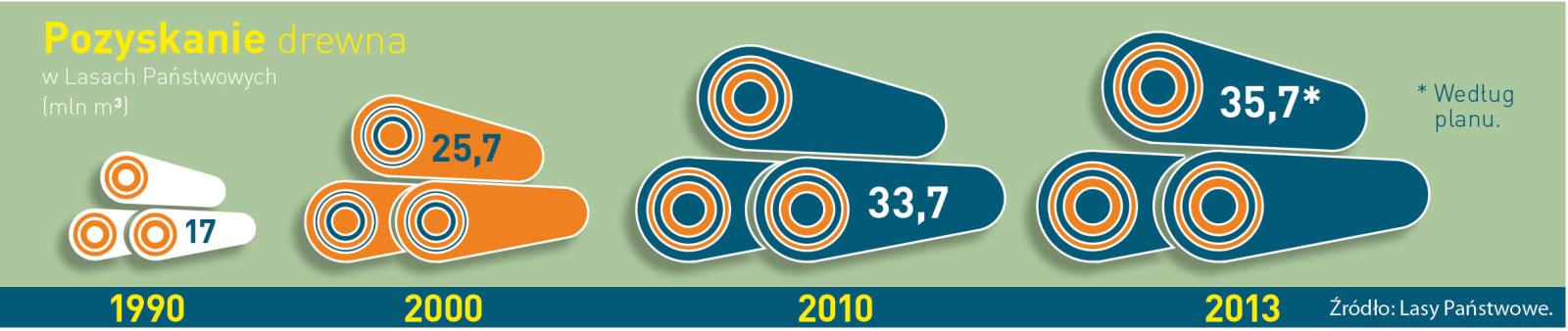 Głównym dostawcą surowca na polski rynek są Lasy Państwowe, które pokrywają ponad 90 proc. zapotrzebowania krajowego przemysłu i mieszkańców. Aby zaspokoić rosnący popyt, leśnicy zwiększają pozyskanie drewna: od 1990 r. wzrosło ono przeszło dwukrotnie – do ponad 35 mln m sześc. Ponieważ jednocześnie rośnie powierzchnia lasów, a przede wszystkim ich zasobność, naukowcy oceniają, że Lasy Państwowe będą mogły zwiększyć pozyskanie drewna do 40 mln m sześc. w 2030 r. i 45 mln m sześc. w połowie stulecia.